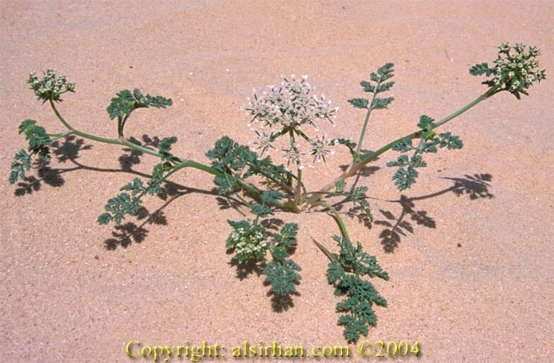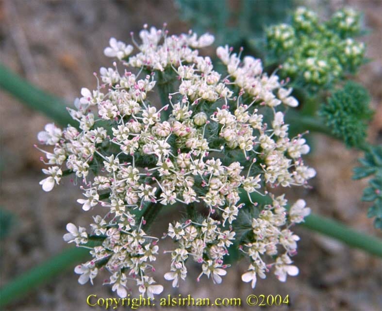 البسباس نبات حولي من الفصيلة الخيمية (Umbelliferae) متفرع من القاعدة يرتفع عن الأرض بمقدار 20 سم ويزحف قليلاً على الأرض، وأوراقه تشبه أوراق الجزر وكذلك طعم أوراقه وسوقه، أزهاره خيمية تخرج من ساق وتتوزع على شكل نصف دائرة بيضاء اللون ويكون لون المتك بنفسجي وللأزهار رائحة طيبة وخصوصاً إذا انتشر النبات وملأ المكان وخصوصاً في الشهر الرابع عندما يهيج البسباس في الحر.