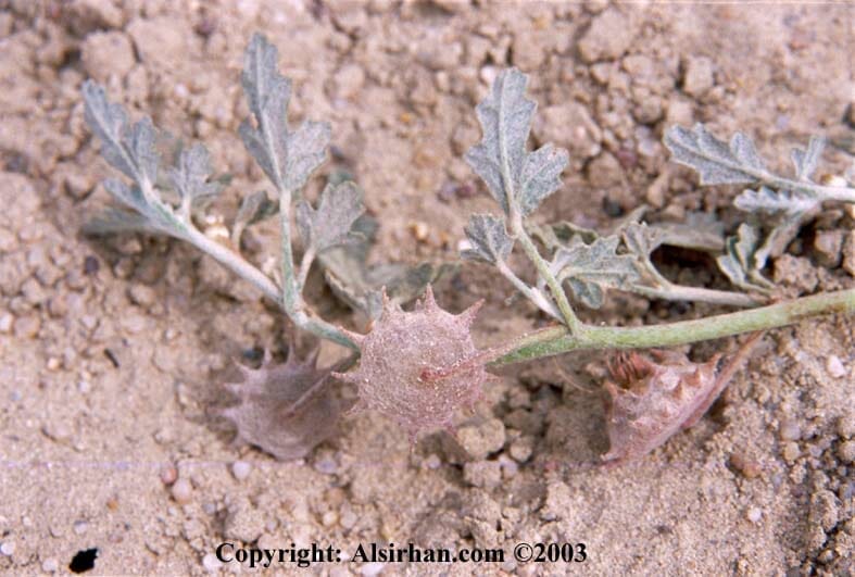 وقال أَبو حنيفة: هي عُشْبة تضرب إلى الصفرة ولها شوك يسمى الحَسَك أَيضاً مُدَحْرَجٌ، لا يكاد أَحد يمشي عليه إِذا يبس إِلاَّ مَنْ في رجليه خُفّ أَو نعل؛ وقال أَبو نصر في قول زهير يصف القطاة:
